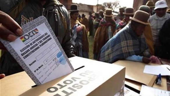 Dos discursos se contraponen en este peculiar día de elecciones. El primero: Pioneros –como en tantas cosas- los bolivianos seremos el primer país del hemisferio que irá a las urnas para elegir a la totalidad de su Poder Judicial. No contentos con votar por los miembros del Tribunal Supremo Electoral y el Tribunal Constitucional Plurinacional, votaremos por el ¡Tribunal Agro Ambiental y el Consejo de la Judicatura! ¿Se puede pedir más democracia? El celofán que envuelve el proceso, es evidente, lo puede todo; por ejemplo esta celebración por adelantado de la democracia participativa de los bolivianos.